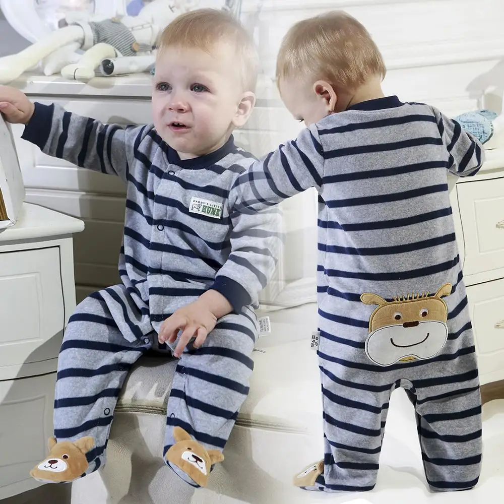 Newborn Baby Boy Autumn-winter Fleece Climbing Clothes 3-12M Kids Footed Pajamas Long Sleeved Infan